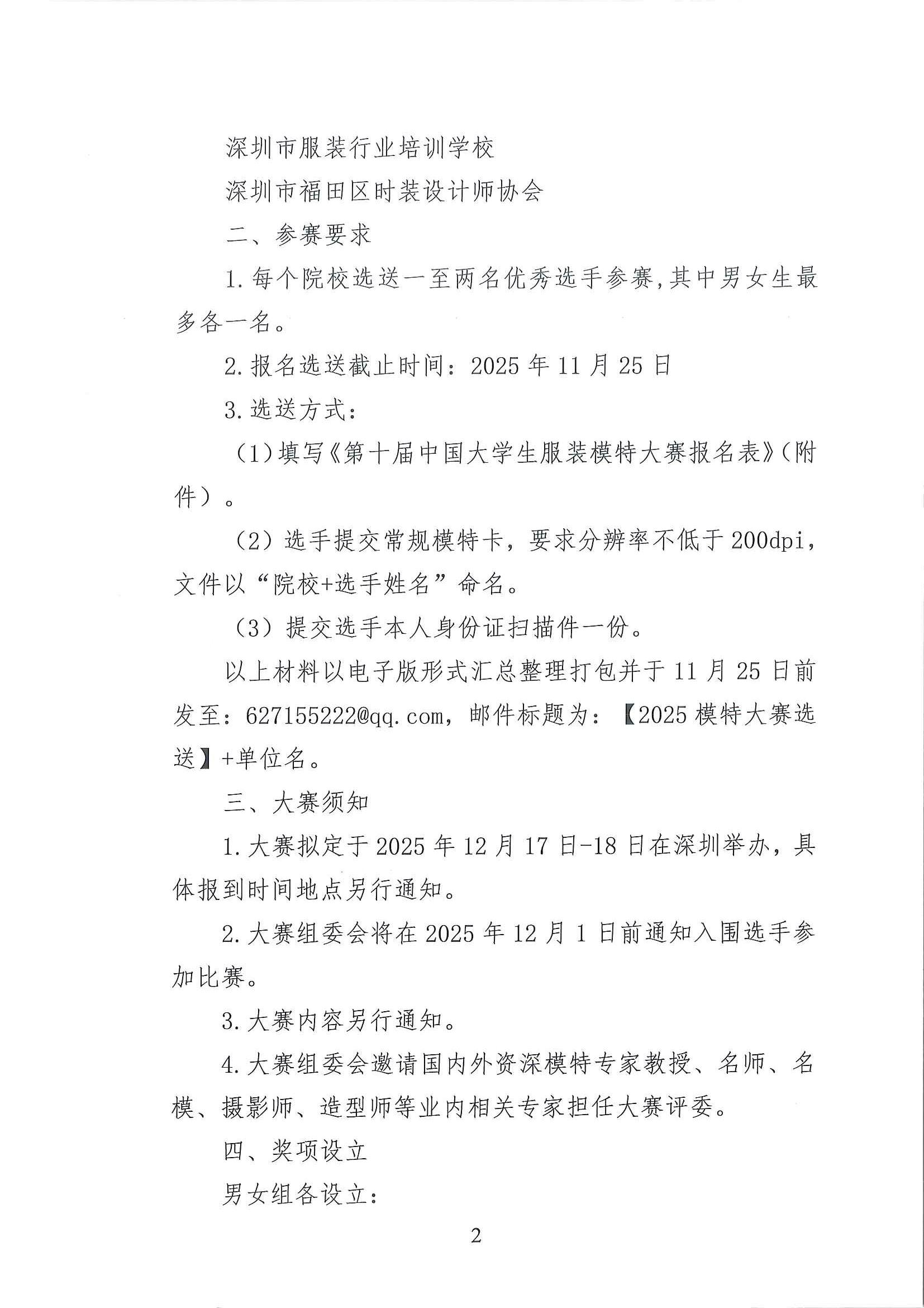 2025年9月28日,中国纺织服装教育学会发布了“关于举办第十届中国大学生服装模特大赛的通知”。