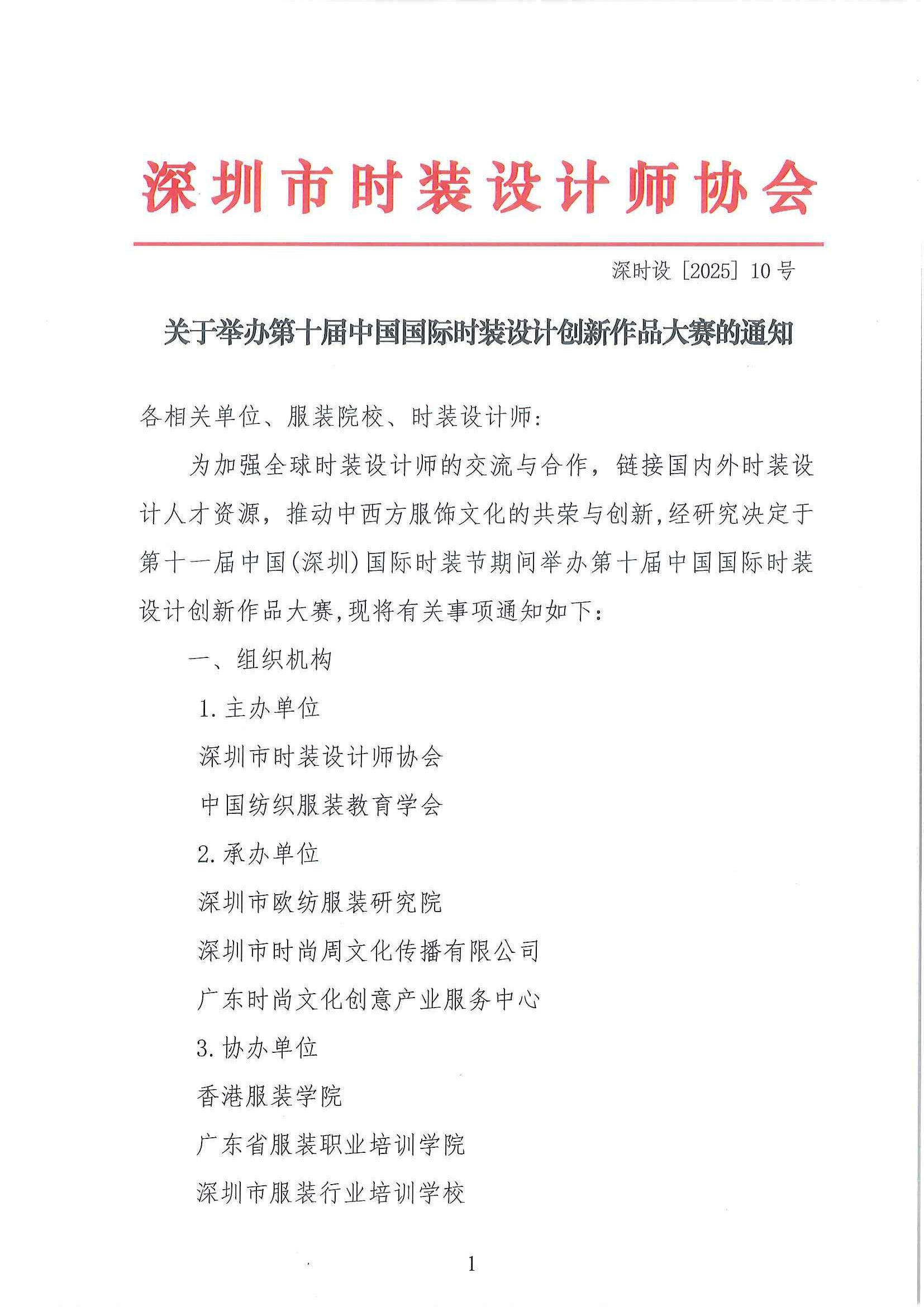 关于举办第十届中国国际时装设计创新作品大赛的通知
