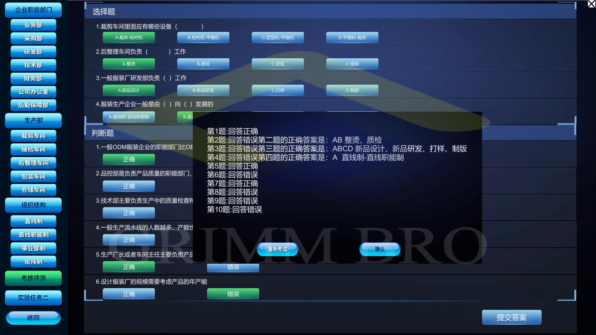进入组织结构模拟环节,实验通过3D虚拟企业沙盘还原真实运营场景。学生可操控视角观察业务部、生产部等八大部门的协同流程,如订单需求对接、生产排期优化、跨部门信息流转等动态过程,结合直线制、矩阵制等四种组织架构的对比解析,通过10道管理决策题培养"因企制宜"的组织设计能力。