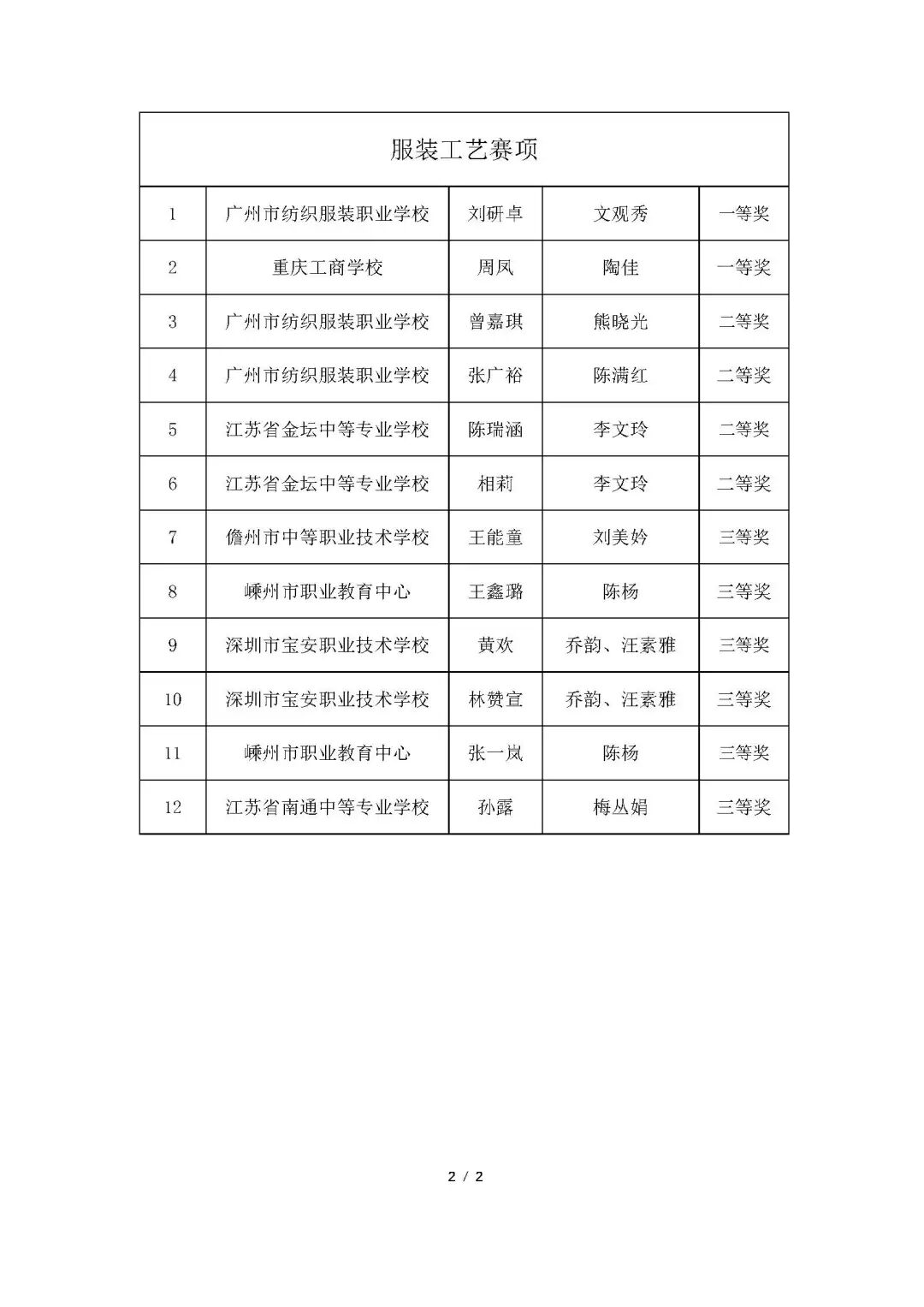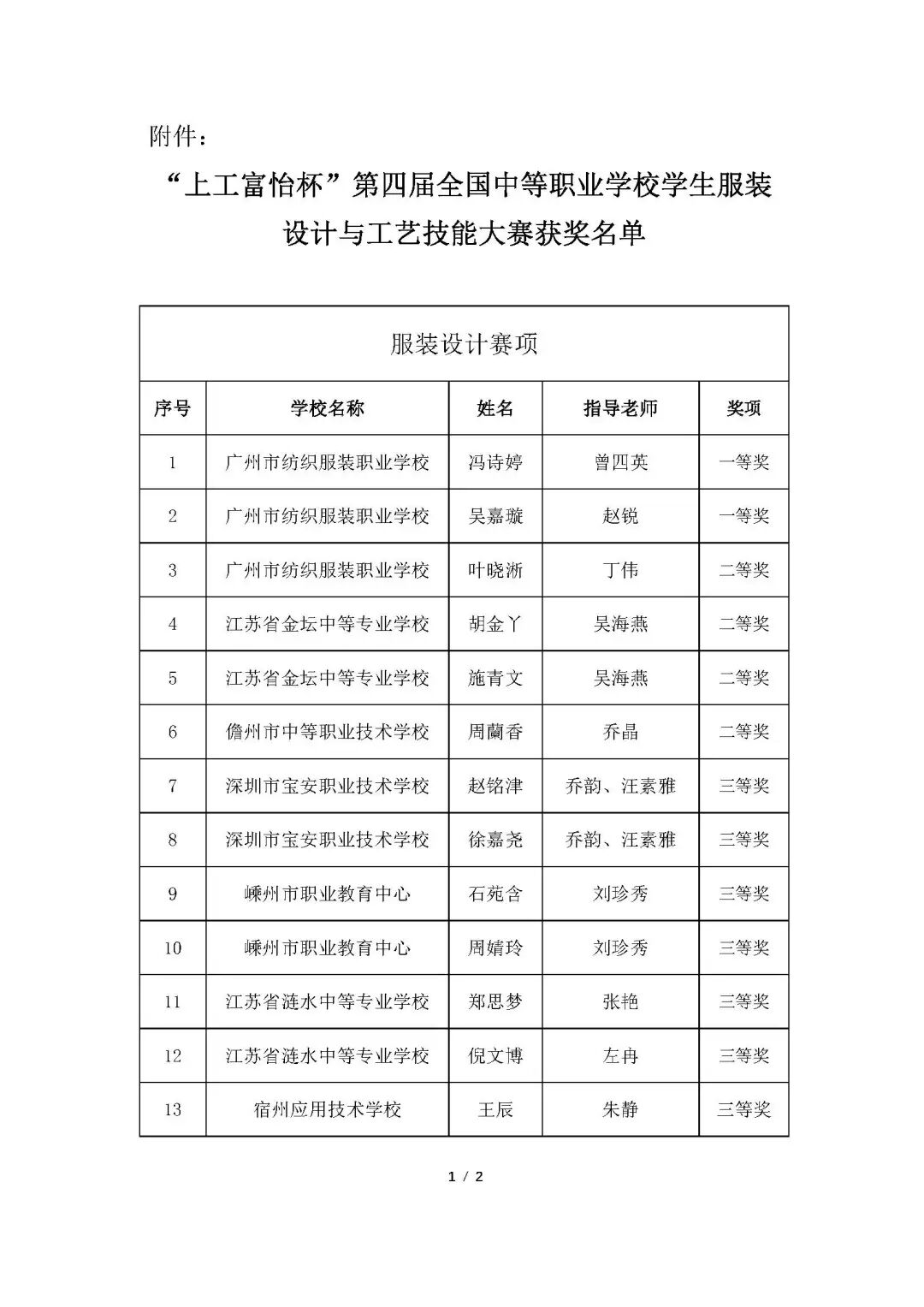 关于公布“上工富怡杯”第四届全国中等职业学校学生服装设计与工艺技能大赛获奖结果的通知