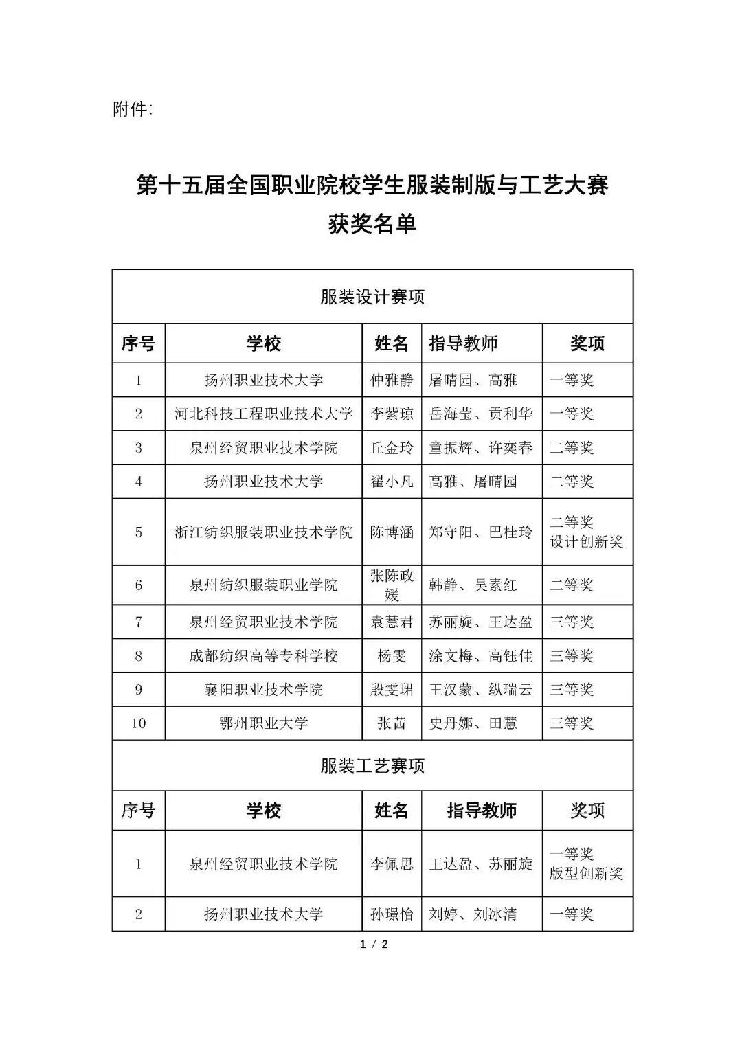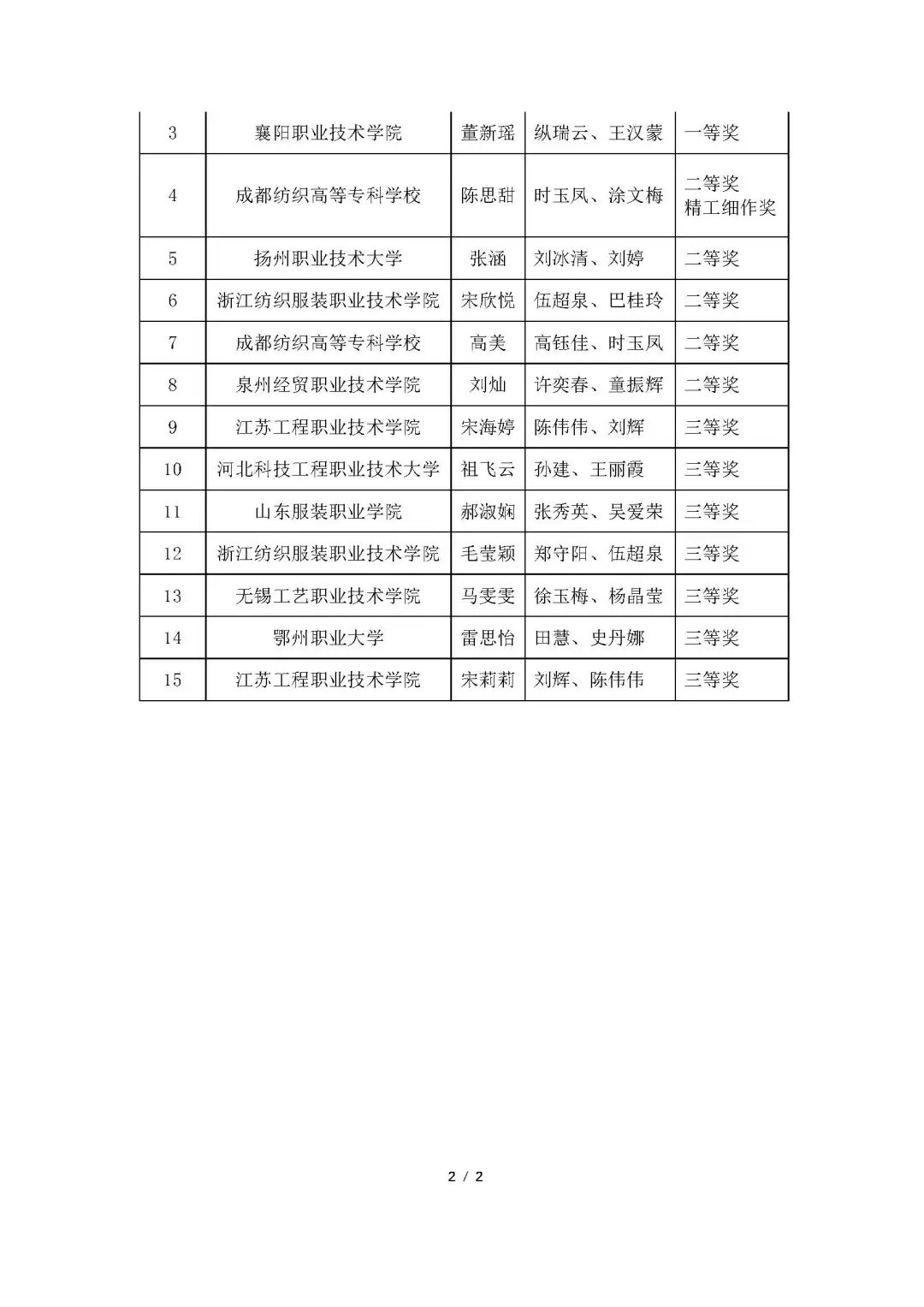 关于公布“上工富怡杯”第十五届全国职业院校学生服装制版与工艺技能大赛获奖结果的通知