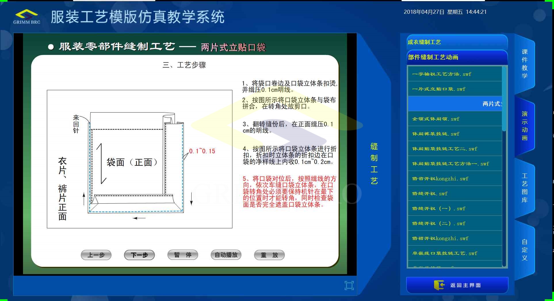 在教学内容设计上,服装工艺模板仿真教学系统构建了完整的知识体系。产品设计模块通过多媒体技术,生动展现从创意构思到成品实现的完整流程;工业样板模块将复杂的结构原理转化为直观的可视化内容,帮助学生深入理解版型制作的要领;缝制工艺模块通过详细的操作演示,系统展示从基础技法到复杂工艺的完整过程;工艺模板模块则紧跟技术发展趋势,全面呈现现代模板技术的创新应用。
