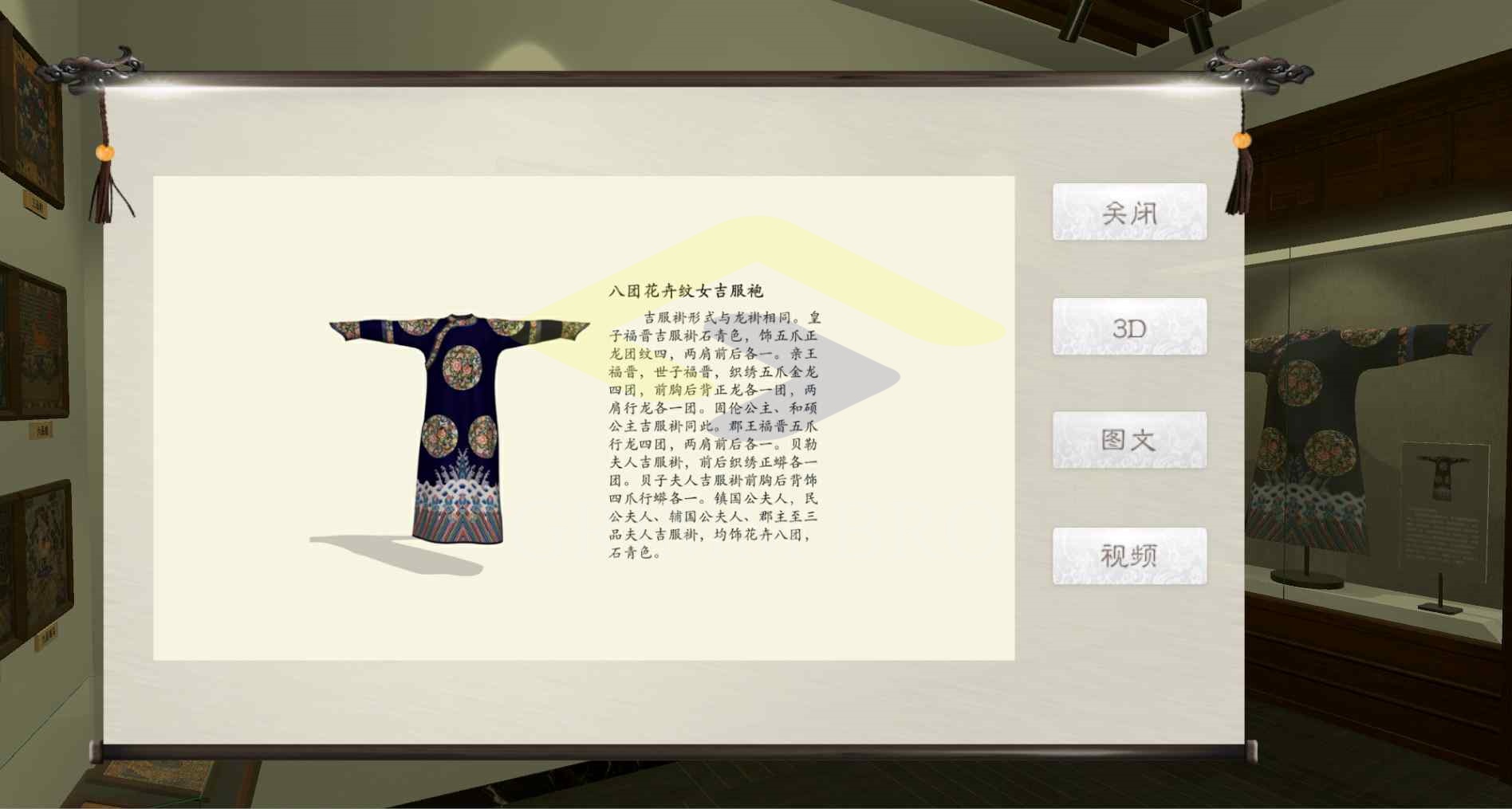 多模态交互让认知“深”下去。系统内置高清图文、语音解说、3D动画等媒介。学生点击文物即可弹出详细讲解,关键工艺配有动态演示,纹样、结构、面料均可放大观察,将抽象历史转化为具身体验,记忆效率远超传统课堂。